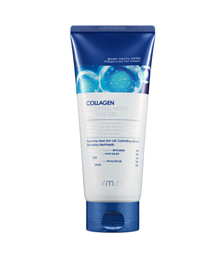 Brand: Farmstay / Size: 180 ml / Key Ingredient: Hydrolyzed collagen / Texture: Gel-type, no harsh scrub