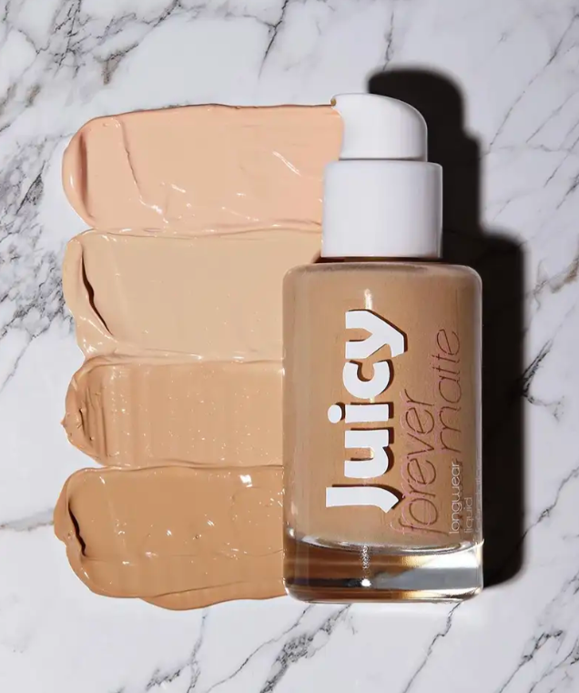 Reach flawless skin with Juicy Beauty Forever Matte Foundation, characterized by full coverage, a lightweight texture, and enduring wear that leaves a shine-free finish.