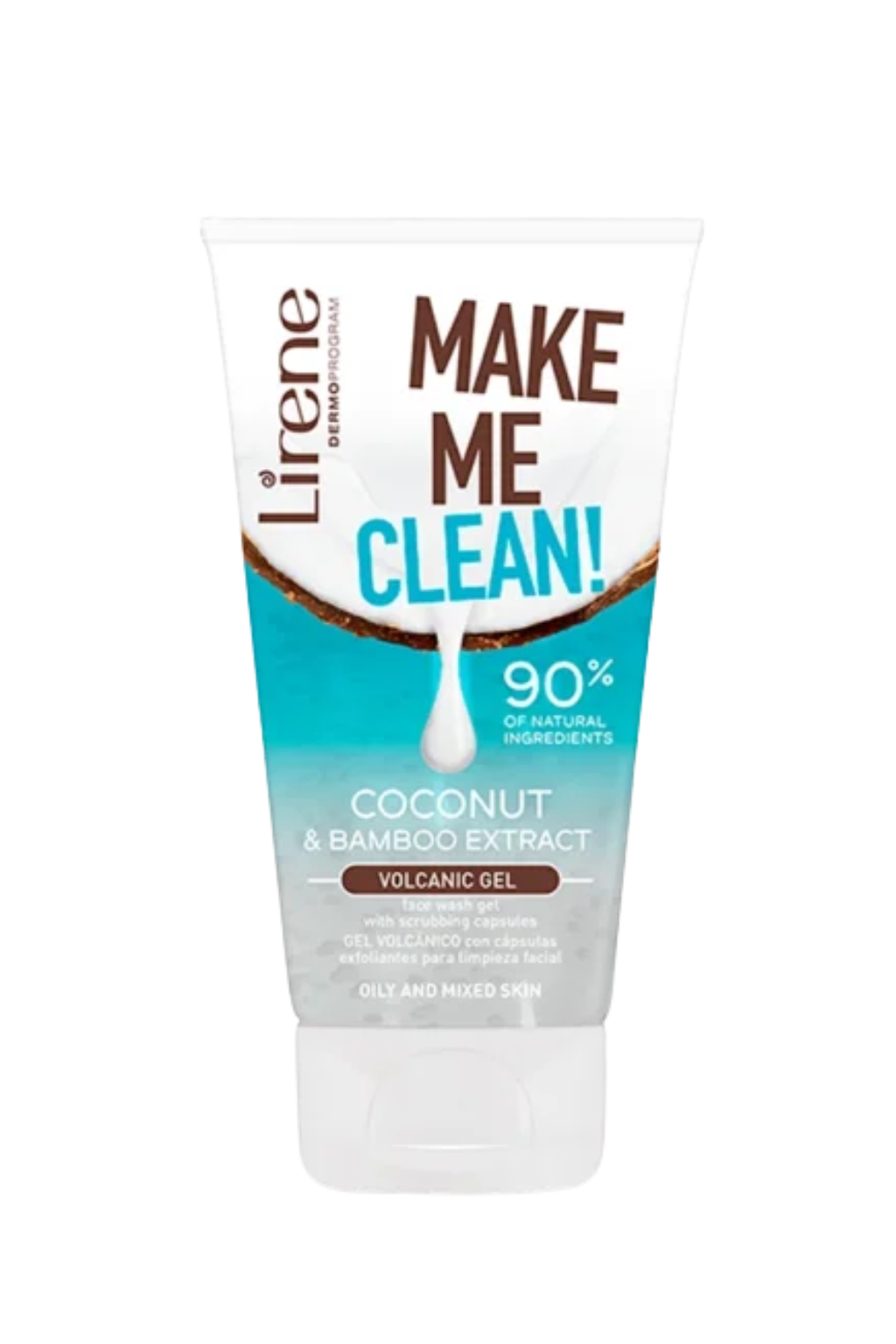 Brand: Lirene / Volume: 150 ml / Key Ingredients: Volcanic igneous rock capsules, Coconut water, Bamboo extract / Skin Type: Oily and combination skin / Texture: Gel cleanser with peeling capsules