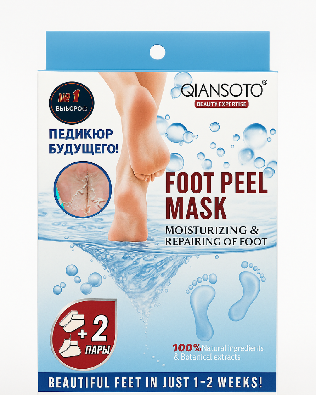 A deeply exfoliating and moisturizing foot peel mask that removes rough, dead skin to reveal soft, smooth, and baby-like feet within 1–2 weeks. Formulated with 100% natural ingredients and botanical extracts, it rejuvenates tired feet and restores skin elasticity.