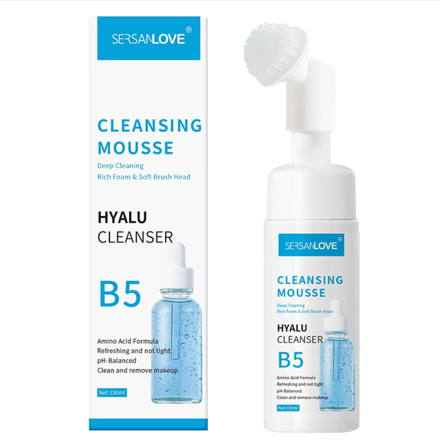 Brand: Sersanlove / Volume: 150 ml / Texture: Foamy mousse / Skin Type: All skin types, especially dry or sensitive / Key Ingredients: Hyaluronic Acid – locks in moisture for deep hydration / Vitamin B5 (Panthenol) – nourishes and strengthens skin barrier / Amino Acids – cleanse gently without stripping skin