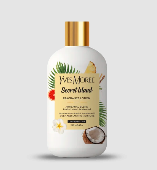 A rich body lotion infused with shea butter, vitamin E, and pro-vitamin B5 for deep skin hydration, accompanied by a lasting exotic musk and sandalwood scent.